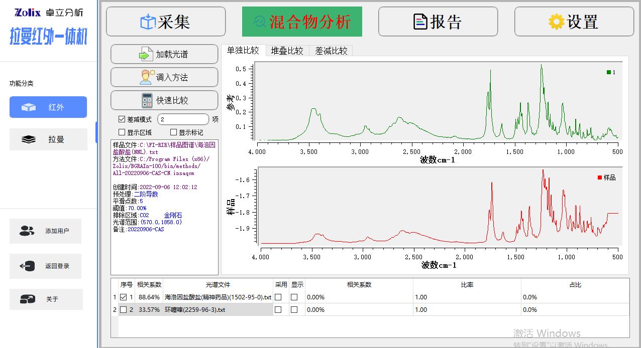 Win10操作系統(tǒng)下的全中文版處理軟件, 紅外模組功能包括:紅外光譜測(cè)量功能、光譜數(shù)據(jù)預(yù)處理功能、譜圖快速比較功能、標(biāo)準(zhǔn)譜峰檢索功能、用戶自建標(biāo)準(zhǔn)譜庫(kù)功能、定量分析功能、自動(dòng)扣除金剛石/CO2吸收峰功能、智能峰位識(shí)別報(bào)警功能、一鍵式測(cè)評(píng)功能、報(bào)告自動(dòng)生成及打印功能等 拉曼模組功能包括:拉曼光譜測(cè)量功能、譜圖快速比較功能、譜圖自動(dòng)保存、批量刪除,報(bào)告自動(dòng)生成及打印功能等 |