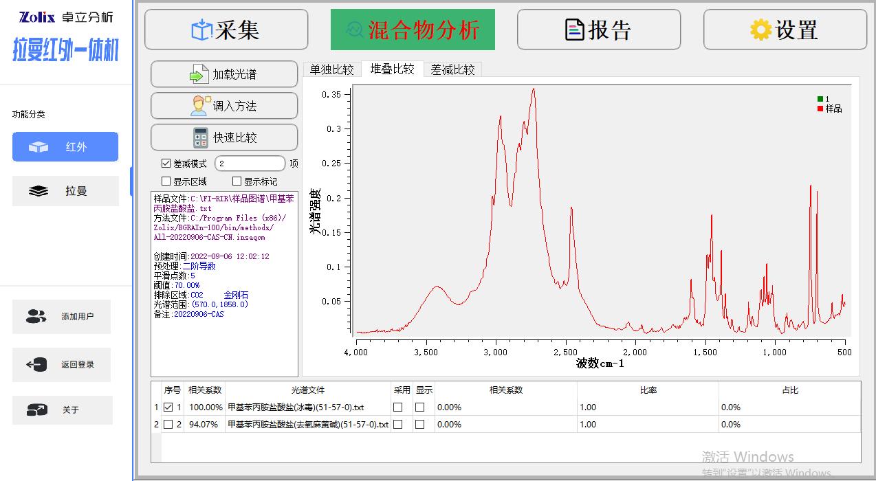 配置專業(yè)的紅外譜圖數(shù)據(jù)庫(kù),包括易制毒化學(xué)品、大麻素類物質(zhì)、芬太尼類物質(zhì)、新精活毒品、危險(xiǎn)化學(xué)品等物質(zhì)的譜圖,其中毒品類譜圖超過(guò)2400張 |