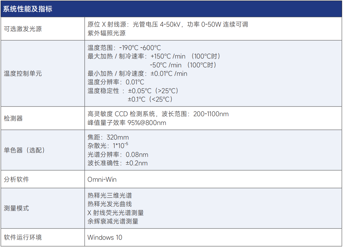 TL-900 熱釋光測試系統(tǒng)性能指標(biāo)