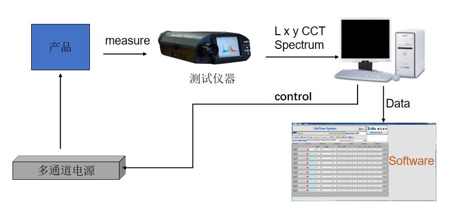 該系統(tǒng)是集成亮度計(jì)、暗箱、高精度運(yùn)動(dòng)機(jī)構(gòu)、系統(tǒng)檢測(cè)軟件、多通道電源、CCD自動(dòng)對(duì)位、工控機(jī)為一體的自動(dòng)化檢測(cè)系統(tǒng),主要應(yīng)用于OLED加速老化壽命測(cè)試