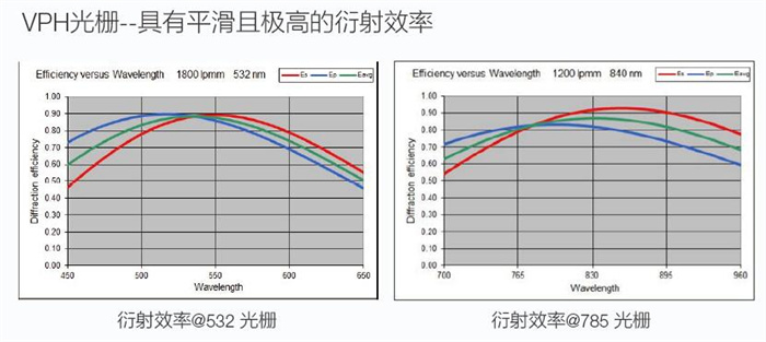 高透射VPH光柵保證了高衍射效率,增透鍍膜透鏡確保了最大的通光效率,從而實(shí)現(xiàn)了可見(jiàn)或近紅外最大的通光量