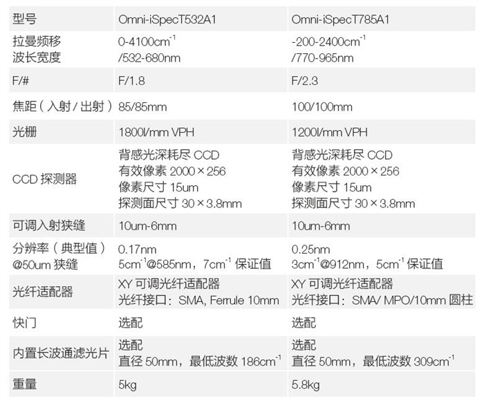 卓立漢光Omni-iSpecT是專為拉曼等需要高光通量與高靈敏度應(yīng)用場(chǎng)景特殊設(shè)計(jì)的高性能光譜儀,目前具有可見(jiàn)532nm與近紅外785nm兩個(gè)不同波 長(zhǎng)范圍的配置。