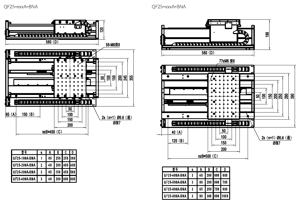 QF系列氣浮導(dǎo)軌滑臺命名規(guī)則: