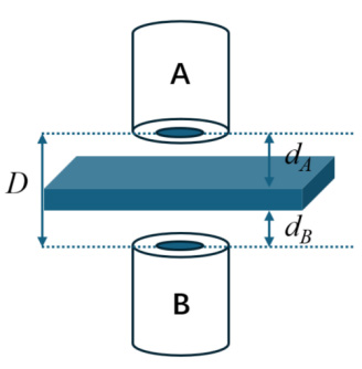 測(cè)量原理: 在被測(cè)導(dǎo)體兩側(cè)相對(duì)安裝兩只傳感器( Sensor A 和 Sensor B),其端面之間的距離 D 固定。 厚度的計(jì)算公式為 Thickness= D - (dA + dB),其中 dA 和 dB 分別為兩只傳感器所測(cè)到的金屬表面距離的精確讀數(shù)。