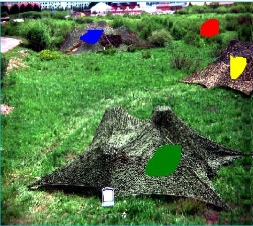 綠色植被、樹(shù)木等綠色的目標(biāo)與偽裝目標(biāo)在整個(gè)大環(huán)境下都顯示為綠色,而利用短波紅外相機(jī)進(jìn)行拍攝則可以區(qū)分開(kāi)真實(shí)的綠色植被(或者樹(shù)木、草)是與偽裝目標(biāo)不一樣的。