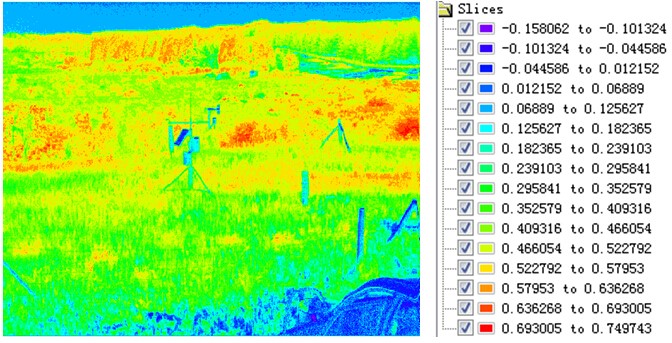 不同的目標(biāo)物(或植被)的歸一化植被指數(shù)是不同的,利用植被標(biāo)準(zhǔn)算法進(jìn)行處理后可以得到相應(yīng)的指數(shù)系數(shù)。