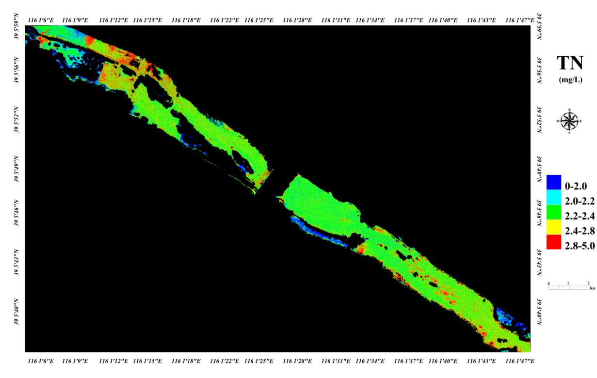 Fig. 7 Inversion map of UAV hyperspectral total nitrogen in Daqing River