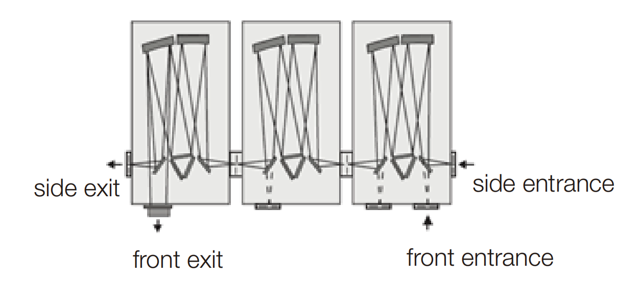 The triple monochromator is consisted of three image calibration monochromators by fine adjustments. The first two monochromators connected in subtractive dispersion mode to reduce stray light; the last two monochromators connected in additive dispersion mode to improve the resolution. The triple spectrometer is flexible for use in single, double and triple monochromator operation. Thanks to its tunable wavelength and adjustable notch, the triple spectrometer is mainly used for high-end Raman spectrum measurements, such as ultraviolet excitation Raman spectrum and low wavenumber Raman spectrum.