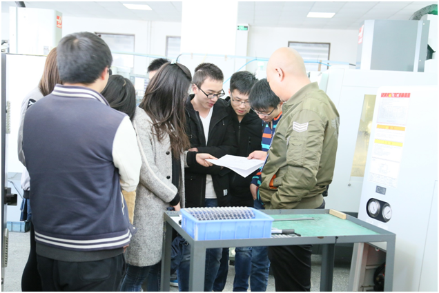 供應(yīng)部李遠超工程師為學生詳細講解各種機加工設(shè)備的功能及用途。