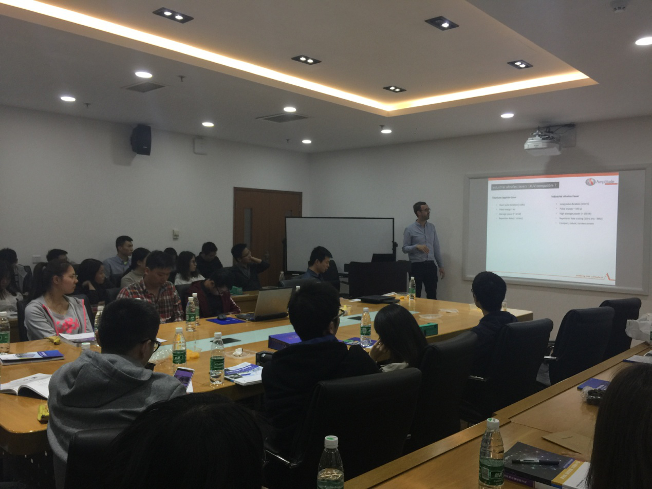 2018年4月26日第一屆研討會如期在華東師范大學(xué)舉辦,卓立漢光副總裁許騰翔、卓立漢光上海辦總經(jīng)理董磊、 Amplitute大中華區(qū)總經(jīng)理張琦、華東師范大學(xué)精密光譜實驗室潘海峰老師及楊巖老師、華東師范大學(xué)精密光譜實驗室的科研人員悉數(shù)到場,現(xiàn)場氣氛積極而熱烈。