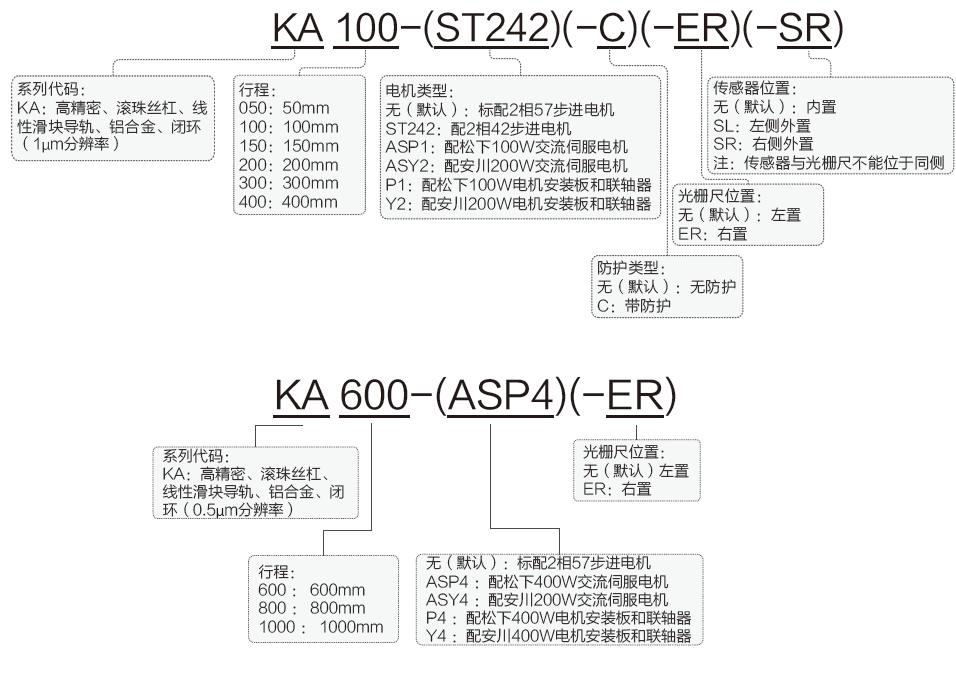 KA系列高精密電動(dòng)直線滑臺(tái)選型表: