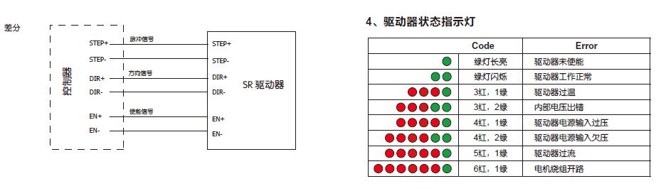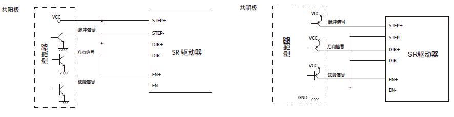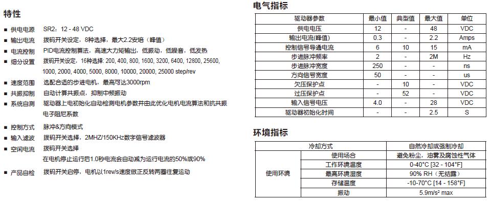 SR2 驅動器有2 個高速輸入口STEP 和DIR,光電隔離,可以接受5-24VDC 單端或差分信號,*高電壓可達28V,信號下降沿有效。信號輸入口有高速數(shù)字濾波器,濾波頻率為2MHZ。