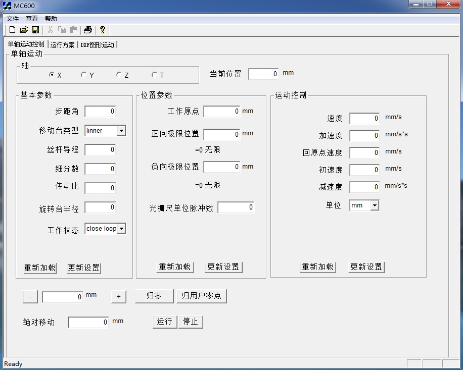 ● 可以利用ZolixMC600控件編程,方便實(shí)現(xiàn)各種運(yùn)動(dòng)控制需求,也可以利用MC600控制軟件,進(jìn)行簡單的運(yùn)動(dòng)控制方案,可以方便的設(shè)置運(yùn)動(dòng)參數(shù)和位置參數(shù),與自行開發(fā)相比,可大大減少工作量。