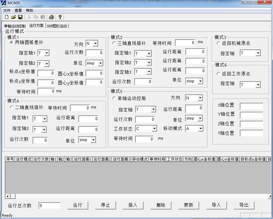 ● 運(yùn)行方案界面,可對單軸或多軸運(yùn)動(dòng),設(shè)置運(yùn)行方案,方便進(jìn)行連續(xù)地自動(dòng)運(yùn)行