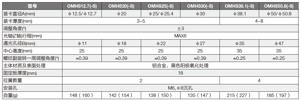 OMHS系列三維高穩(wěn)定光學(xué)調(diào)整架選型表:
