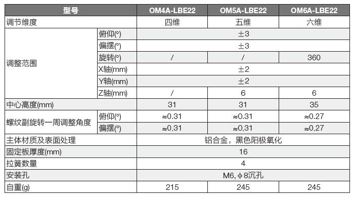 OMxA 系列多維調整架是基于傳統的光學調整架,增加了多個維度的調節(jié)結構,使其具有4~6 維的調節(jié)功能的光學調整架。