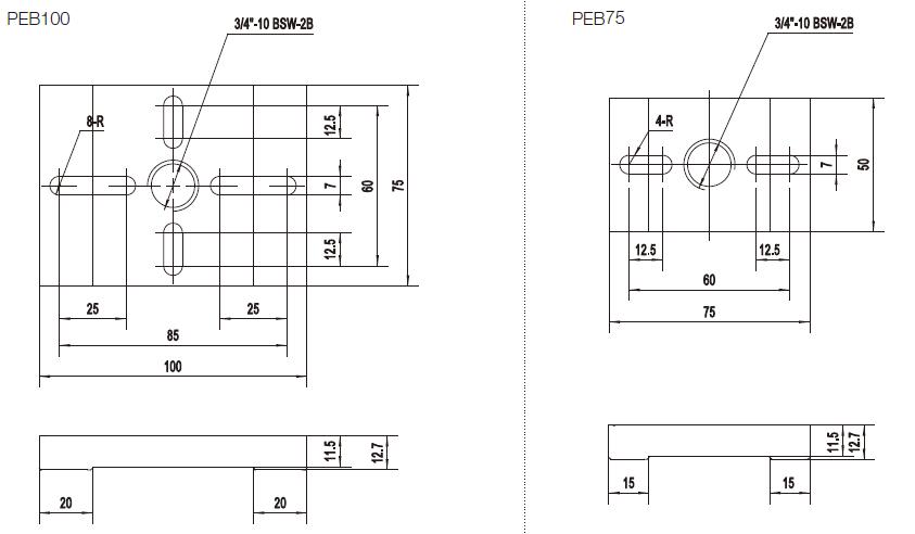 PEB系列英制底板特點(diǎn):安裝孔螺紋為3/4″-10,配合PEH系列英制桿架使用。