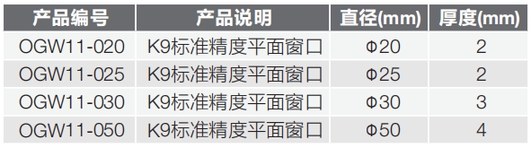 A. OGW11系列,K9玻璃,標(biāo)準(zhǔn)精度,平面窗口