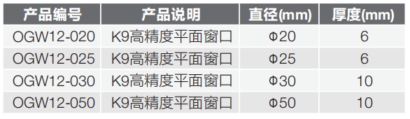 B. OGW12系列,K9玻璃,高精度,平面窗口