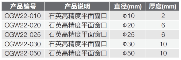 C. OGW21系列,紫外熔融石英,標(biāo)準(zhǔn)精度,平面窗口