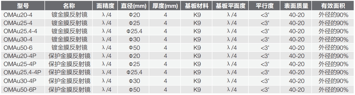 OMAu系列鍍金膜反射鏡