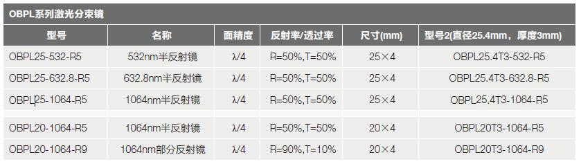 1. OBPL系列激光波長(zhǎng)分束鏡