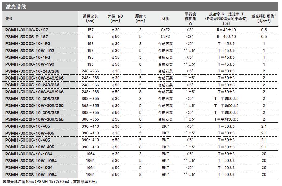 用于紫外激光或YAG激光的半反射鏡。備有從真空紫外到紅外的眾多波長(zhǎng)的系列產(chǎn)品。