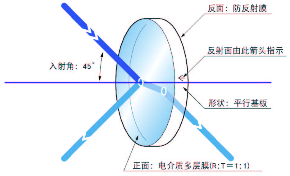 正面有多層電介質(zhì)膜,反面有防反射膜,幾乎沒(méi)有光量的損失。