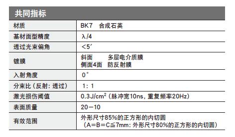 日本SIGMA KOKI紫外激光分束立方體共同指標