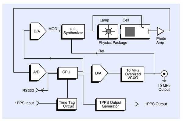 銣鐘又被稱為銣原子鐘,是由銣原子部分和壓控晶體振蕩器組成。銣頻標(biāo)是一種被動型原子頻率,利用的是基態(tài)超精細能級之間的躍遷,躍遷頻率為6.834,682,612 GHz。原子遷躍對微波信號起鑒頻作用而產(chǎn)生誤差信號,通過鎖相環(huán)路伺服晶振的頻率,使激勵信號頻率鎖定到原子躍遷頻率,實現(xiàn)晶振輸出頻率的高度穩(wěn)定和準確。