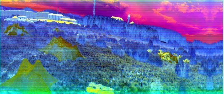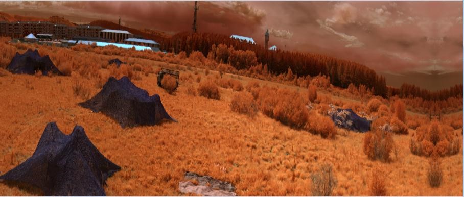 綠色植被、樹木等綠色的目標與偽裝目標在整個大環(huán)境下都顯示為綠色,而利用短波紅外相機進行拍攝則可以區(qū)分開真實的綠色植被(或者樹木、草)是與偽裝目標不一樣的。