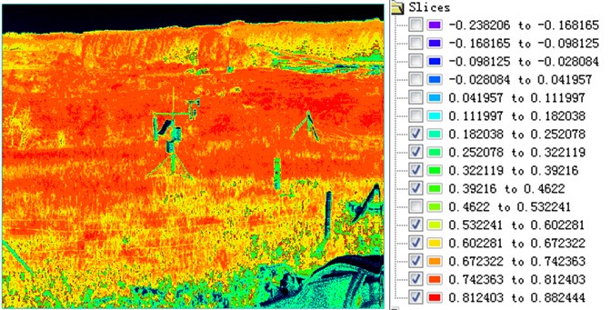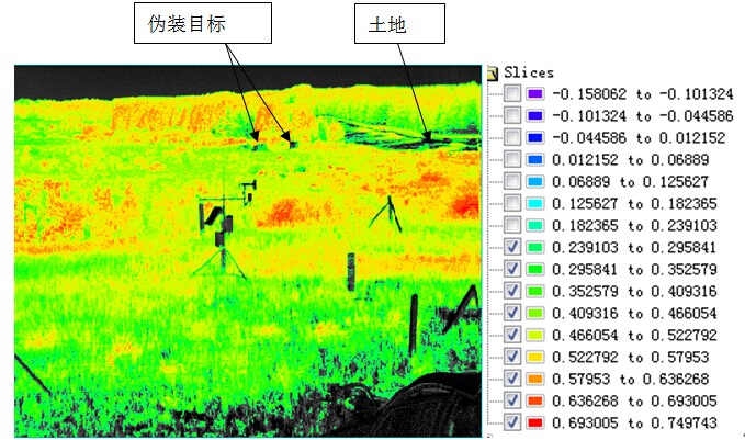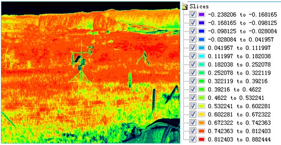 不同的目標物(或植被)的歸一化植被指數(shù)是不同的,利用植被標準算法進行處理后可以得到相應(yīng)的指數(shù)系數(shù)。