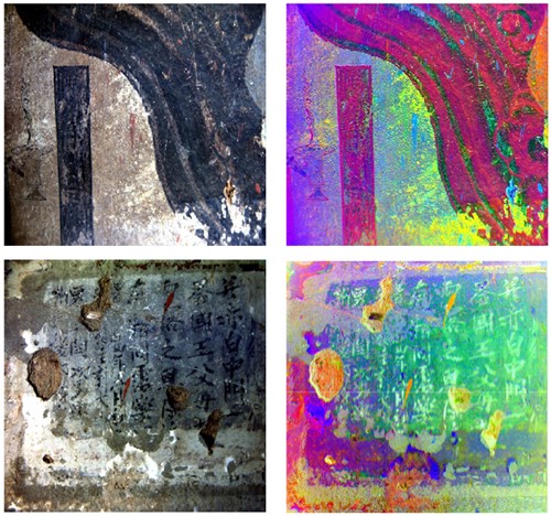 壁畫是歷史與藝術(shù)結(jié)合的產(chǎn)物,它從不同的側(cè)面反映了各個(gè)歷史時(shí)期的經(jīng)濟(jì)文化發(fā)展?fàn)顩r和意識(shí)形態(tài),其文字信息有助于幫助考古學(xué)家深入了解歷史的發(fā)展軌跡及分析早期文字的發(fā)展。斗轉(zhuǎn)星移,這些精美絕倫的壁畫及文字在自然、人為等多種因素的影響下,面臨著起甲、脫落、發(fā)霉、變色、空鼓、酥堿等病害侵?jǐn)_。高光譜成像儀分析采集壁畫信息,是通過與壁畫保持一定距離而進(jìn)行非接觸式掃描實(shí)現(xiàn)的。通過分析圖像文字的輪廓及撰寫文字的原料來快速提取壁畫上的文字信息。