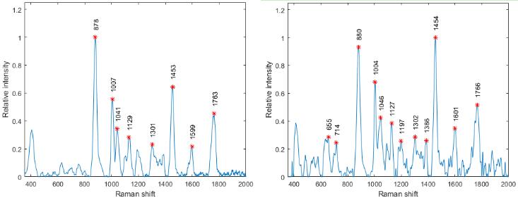 科研式拉曼實(shí)驗(yàn)條件:1064nm激光器,激光功率200mW-250mW,光譜范圍200cm-1-2500cm-1,采集時間15s。