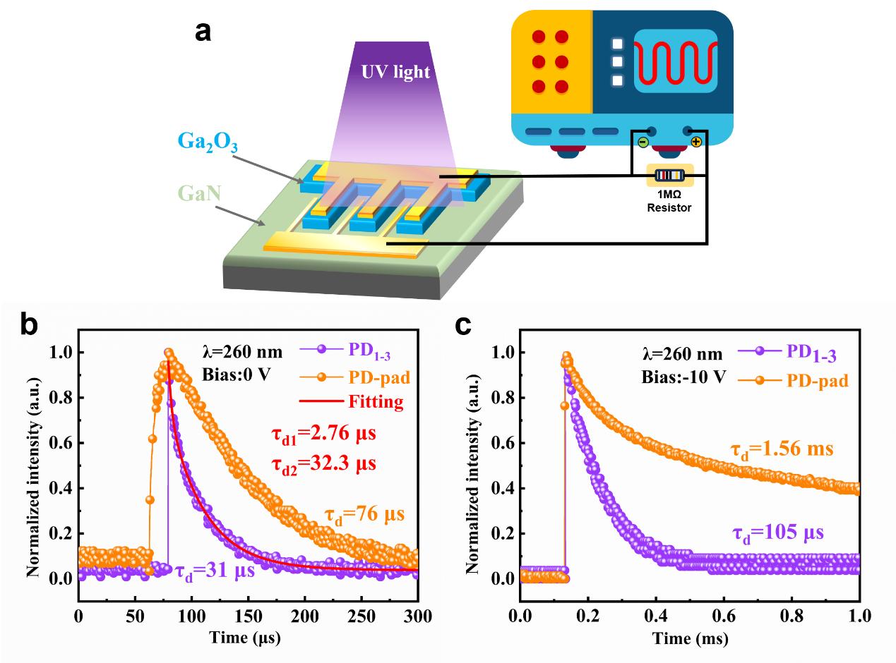GaN/Ga2O3 PN-PD 的時間響應(yīng)特性: