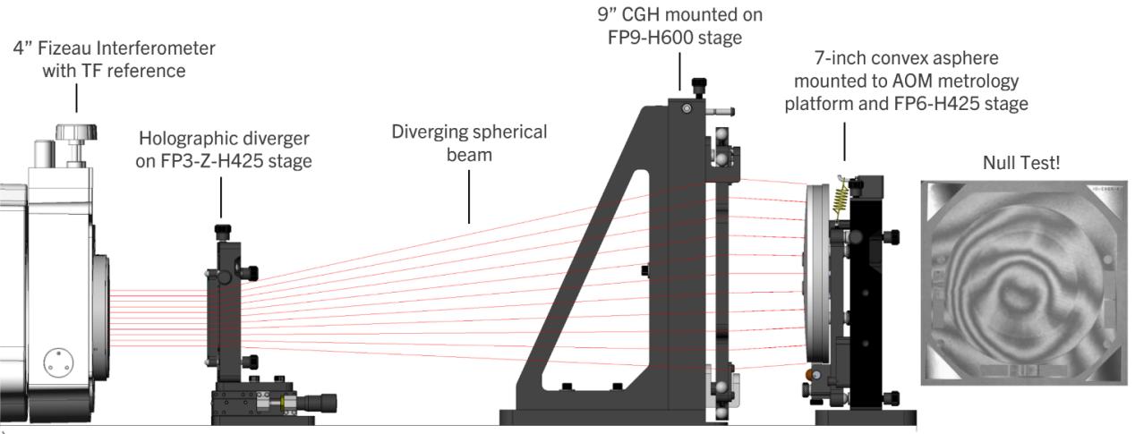 航空相機(jī)鏡頭的組裝中,因為涉及到的光學(xué)元件尺寸往往較大較重,且材料、面型、封裝方式等基于光學(xué)設(shè)計,要求各不相同。并且考慮到實際使用時的復(fù)雜環(huán)境,所以對各個光學(xué)元件的標(biāo)定測試有著極高的要求,一種常用的方式是基于干涉檢測計算全息圖(CGH),實現(xiàn)對柱面光學(xué)器件的干涉檢測。