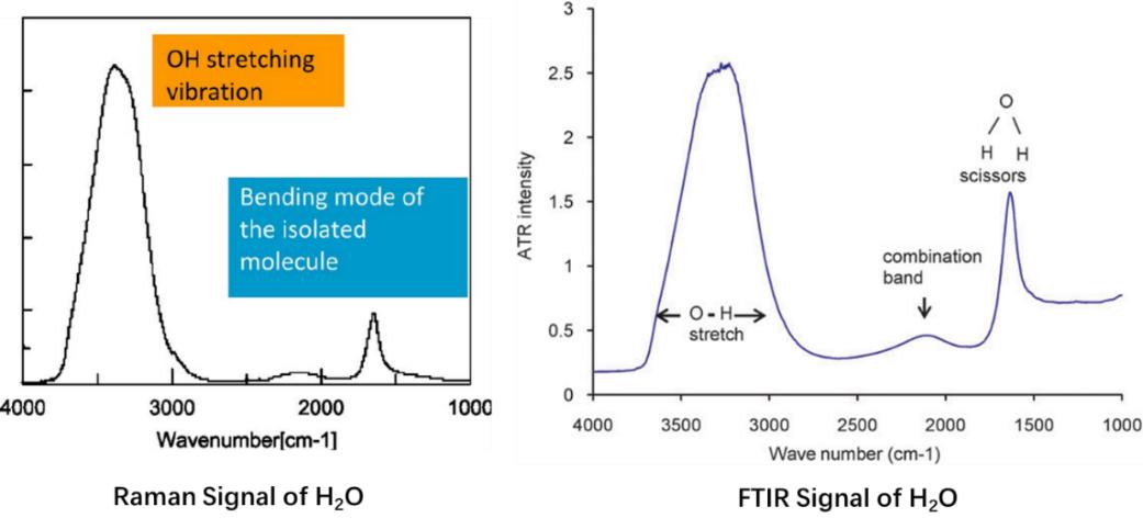 物質(zhì)紅外光譜的產(chǎn)生是由于化學(xué)鍵的振動(dòng)能級(jí)和外紅光的能量相同,發(fā)生了共振吸收,從而發(fā)生能級(jí)躍遷。那么只要振動(dòng)能級(jí)與紅外光子的能量相同就可以發(fā)生共振吸收么?事實(shí)上,還需要滿足電偶極矩的變化。例如,考慮一對(duì)稱的非極性分子的對(duì)稱振動(dòng)模式,總電偶極距在發(fā)生振動(dòng)前后都為零,因此不會(huì)對(duì)紅外有吸收。與之差別的是拉曼光譜,對(duì)于非極性分子的對(duì)稱振動(dòng),由于外電磁場(chǎng)下分子集體產(chǎn)生宏觀極化率,雖然沒有紅外吸收信號(hào),但是存在拉曼散射信號(hào)。而對(duì)于極性分子,可能在振動(dòng)前后同時(shí)存在瞬間偶極矩和極化率的變化,因此可能同時(shí)存在紅外吸收信號(hào)和拉曼散射信號(hào)。