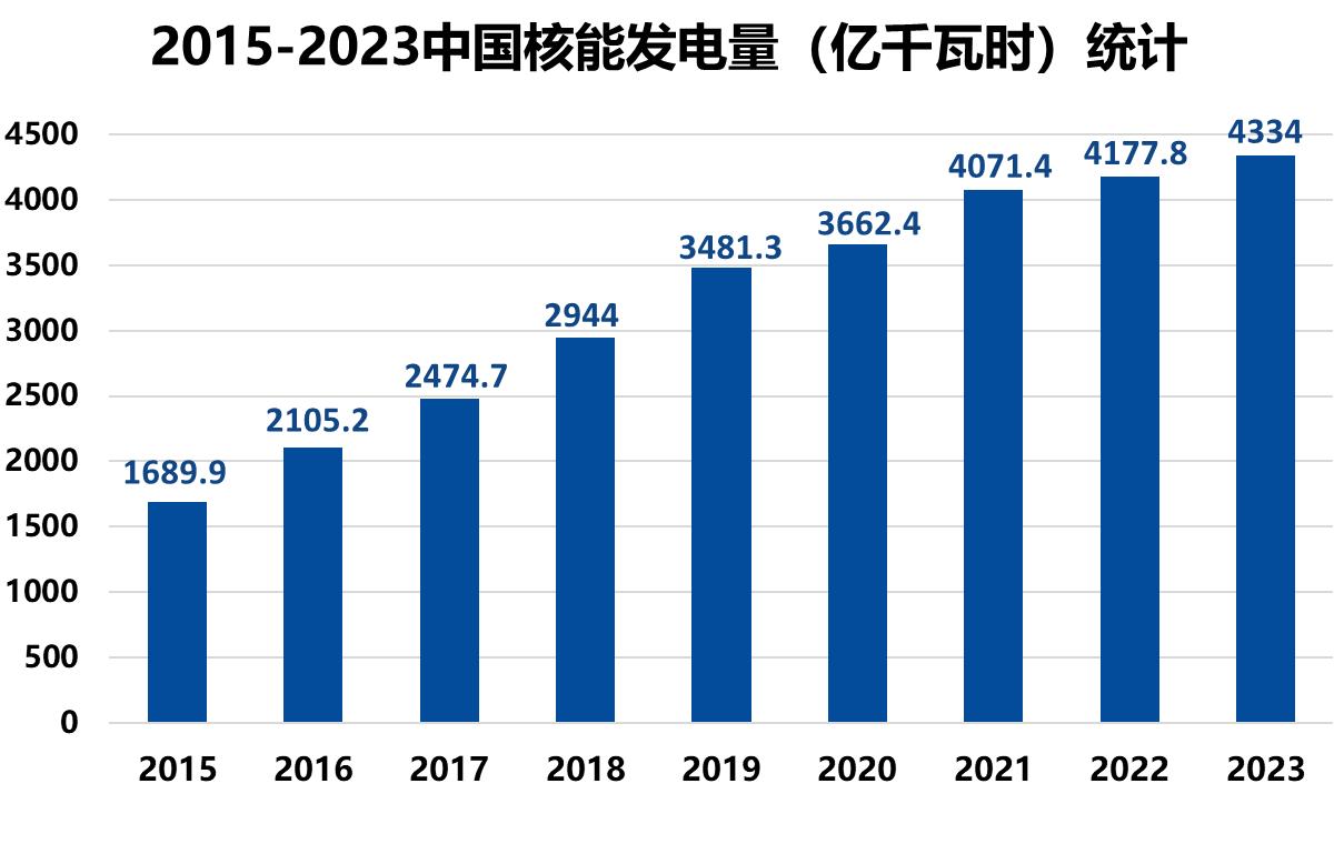 圖1. 2015-2023中國核能發(fā)電量統(tǒng)計[3]