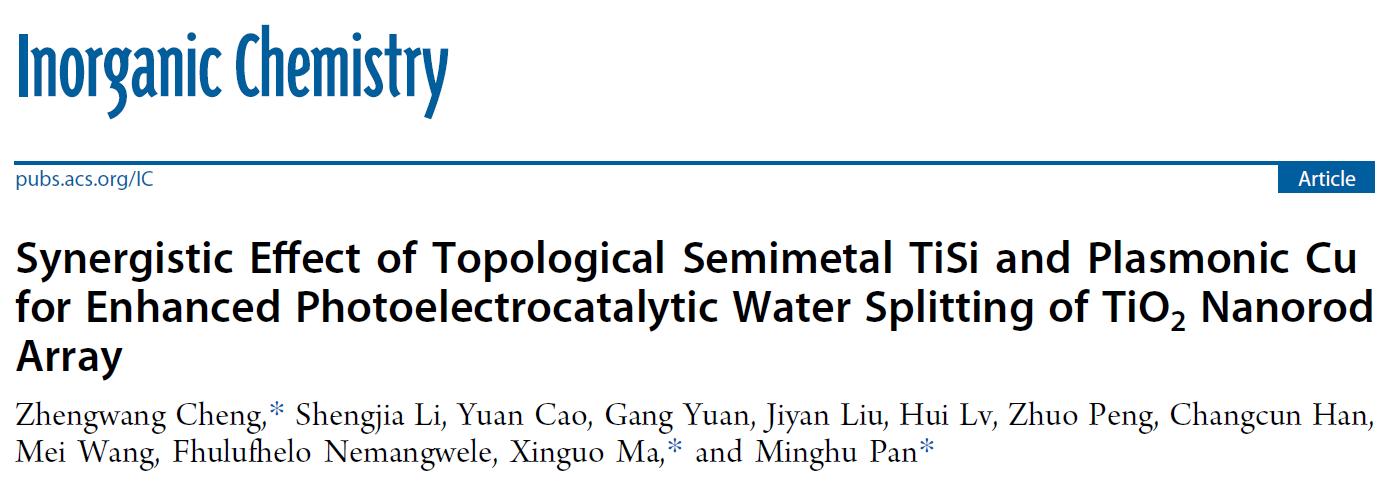 近日,湖北工業(yè)大學(xué)馬新國(guó)、程正旺教授課題組聯(lián)合陜西師范大學(xué)潘明虎教授、江漢大學(xué)劉繼延教授、文達(dá)大學(xué)Fhulufhelo Nemangwele等,在光電催化分解水制氫材料研究中取得重要進(jìn)展,相關(guān)成果以“Synergistic Effect of Topological Semimetal TiSi and Plasmonic Cu for Enhanced Photoelectrocatalytic Water Splitting of TiO2 Nanorod Array”為題發(fā)表在國(guó)際知名期刊《Inorganic Chemistry》上。今天小卓為大家分享該研究成果,希望對(duì)您的科學(xué)研究或工業(yè)應(yīng)用帶來(lái)一些靈感和啟發(fā)。