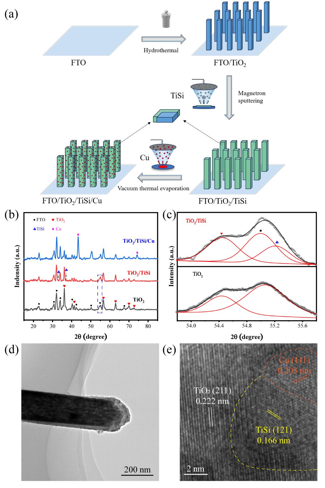 Figure 1. TiO2/TiSi/Cu光陽(yáng)極的制備方法、晶相和界面.