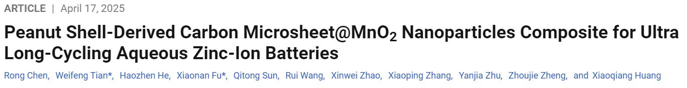 河南工業(yè)大學田偉鋒老師團隊在《Langmuir》期刊發(fā)表了題為“Peanut Shell-Derived Carbon Microsheet@MnO? Nanoparticles Composite for Ultra Long-Cycling Aqueous Zinc-Ion Batteries”的研究論文。報道了一種由可再生農(nóng)業(yè)廢棄物花生殼衍生碳制備的高性能、低成本水系鋅離子電池(ZIBs)復合正極材料。