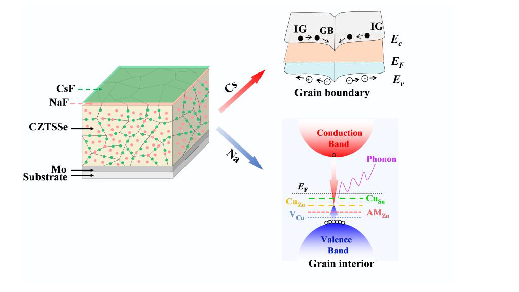 圖1 堿金屬協(xié)同后處理CZTSSe太陽(yáng)能電池中Na和Cs的分布及主要作用機(jī)制