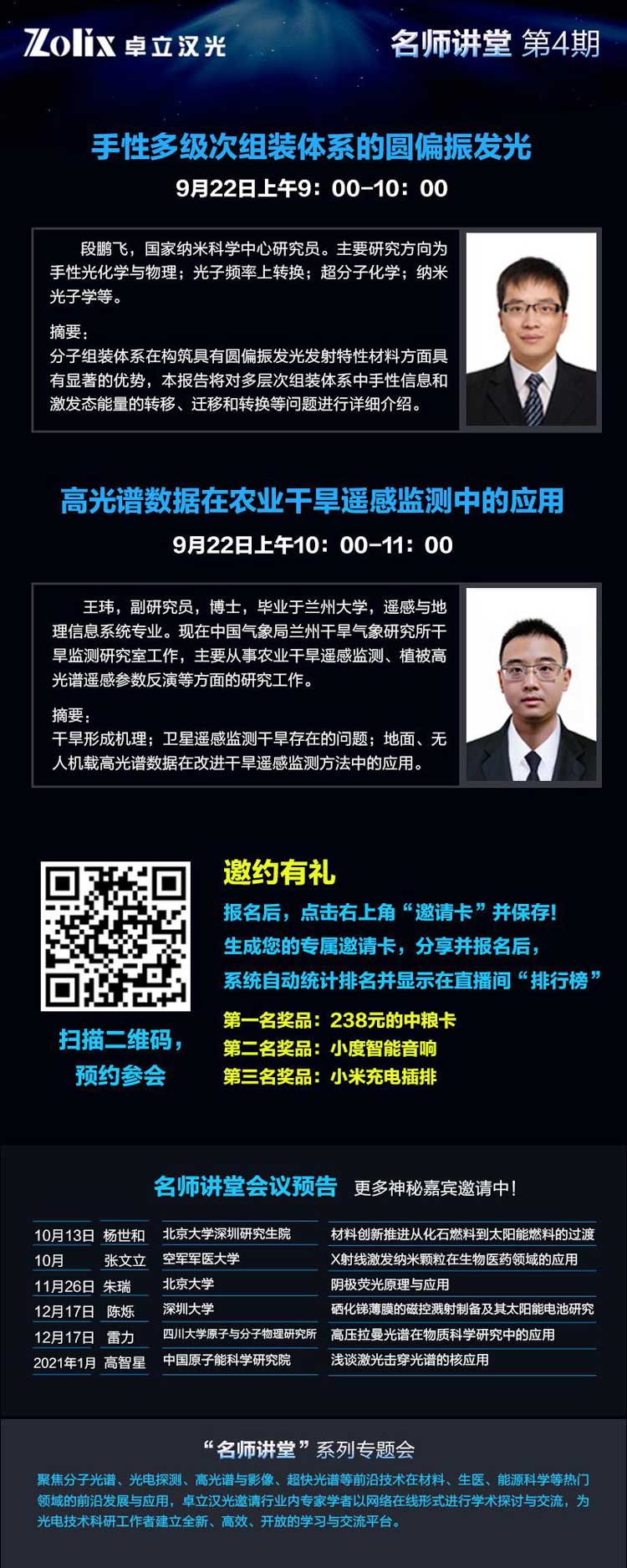 手性組裝圓偏振發(fā)光光譜與農(nóng)業(yè)遙感監(jiān)測高光譜技術(shù),詮釋光譜技術(shù)在微觀與宏觀的不同應(yīng)用領(lǐng)域之中的奧秘,卓立漢光將邀請光電名師為您揭示偏振光譜與高光譜的神秘面紗。即刻報(bào)名,與光電名師面對面交流!