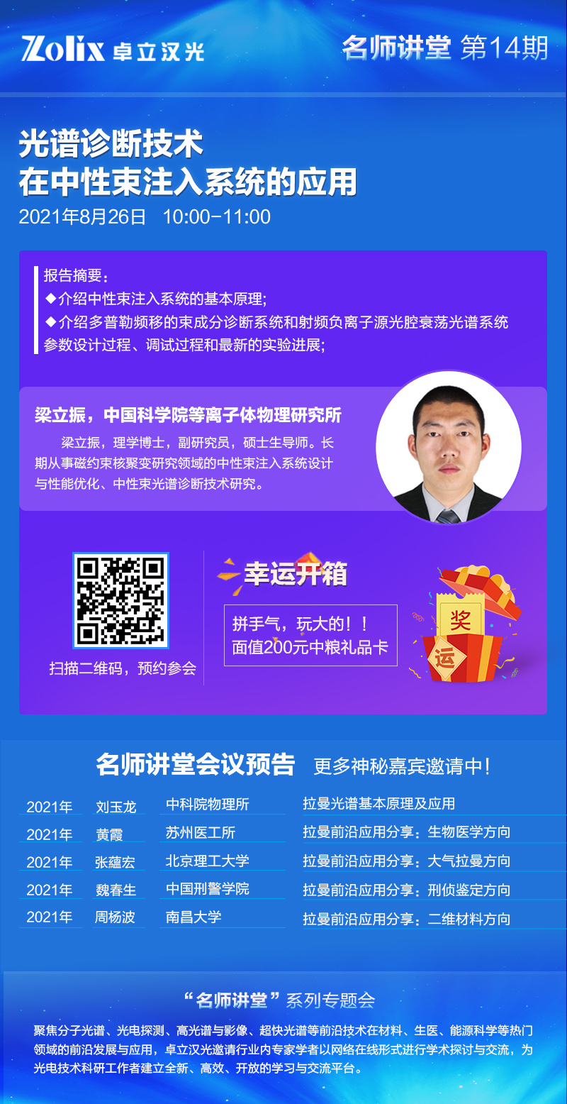 聚焦分子光譜、光電探測(cè)、高光譜與影像、超快光譜等前沿技術(shù)在材料、生醫(yī)、能源科學(xué)等熱門領(lǐng)域的前沿發(fā)展與應(yīng)用,卓立漢光邀請(qǐng)行業(yè)內(nèi)專家學(xué)者以網(wǎng)絡(luò)在線形式進(jìn)行學(xué)術(shù)探討與交流,為光電技術(shù)科研工作者建立全新、高效、開放的學(xué)習(xí)與交流平臺(tái)。