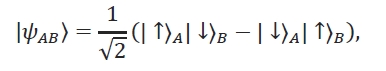 1935年,愛因斯坦、波多爾斯基(Boris Podolsky)和羅森(Nathan Rosen)共同發(fā)表了一篇論文質(zhì)疑量子力學(xué)的完備性[7]。該文章采用理想實驗對量子理論進行邏輯上的論證,認為量子力學(xué)對于微觀世界的描述并不完備。從定域?qū)嵲谡摰挠^點來看,某區(qū)域發(fā)生的事件不能以超過光速的傳遞方式影響其它區(qū)域,對兩個相距足夠遠(類空間隔)粒子的可觀測量進行測量,測量結(jié)果應(yīng)該互不干涉,且測量值是確定的,若量子力學(xué)是完備的,對其中一個粒子的測量不會對另一個粒子造成影響。對于處于自旋疊加態(tài)|???〉的兩粒子