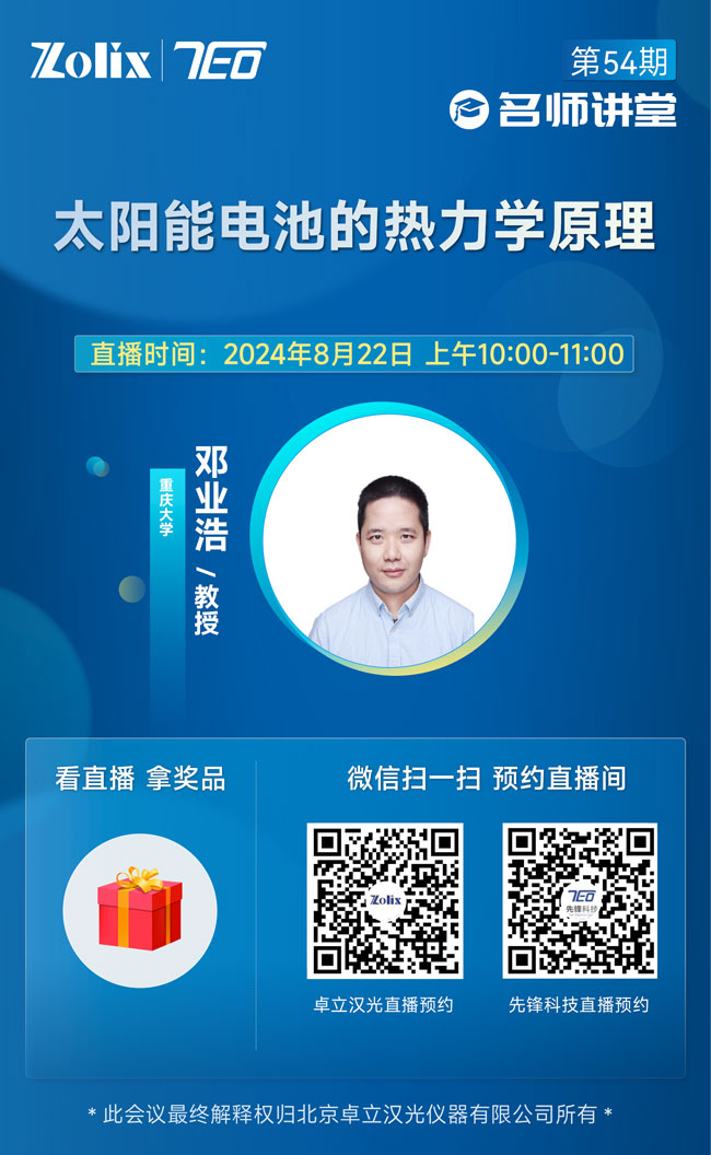 8月22日上午10:00—11:00,重慶大學(xué)教授——鄧業(yè)浩為大家?guī)?lái)講座《太陽(yáng)能電池的熱力學(xué)原理》。直播期間更有豐富好禮相送,歡迎屆時(shí)參加!