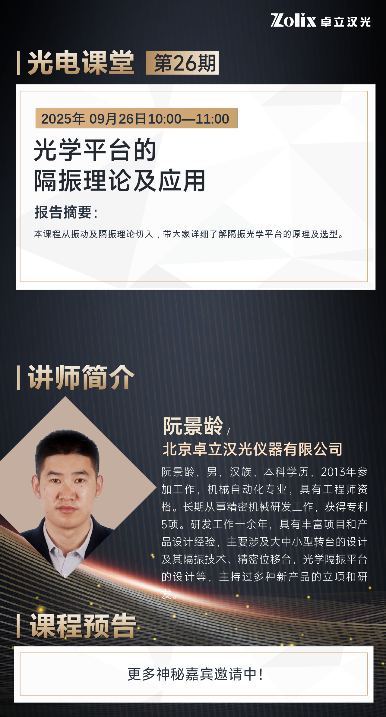 本課程從振動(dòng)及隔振理論切入,帶大家詳細(xì)了解隔振光學(xué)平臺(tái)的原理及選型。