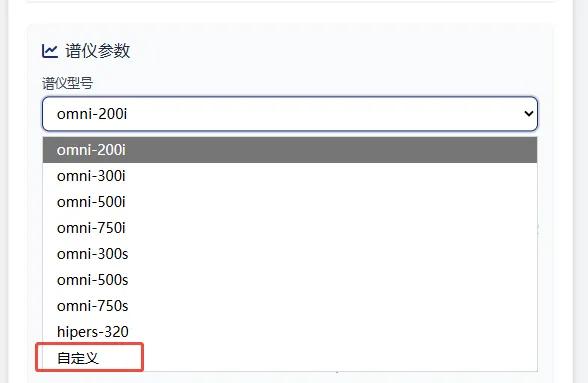 在譜儀型號的*下面,有1個自定義,選擇這個后,入射角,衍射角和中心波長即為可更改的狀態(tài)。即使焦距和所用光柵是一樣的,不同廠家的譜儀設計也是完全不同的,此時需要自行確認光柵方程中的幾個關鍵參數(shù),可以利用第2個標簽頁的光柵計算來進行。