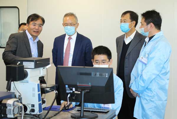 儀式結(jié)束后,懷柔區(qū)委書記、懷柔科學(xué)城黨工委書記戴彬彬和有研科技集團(tuán)有限公司董事長趙曉晨等領(lǐng)導(dǎo)及專家一行26人,蒞臨北京卓立漢光分析儀器有限公司參觀指導(dǎo),并詳細(xì)了解公司項(xiàng)目實(shí)施進(jìn)度及中長期發(fā)展規(guī)劃。北京卓立漢光儀器有限公司董事長、總經(jīng)理丁良成向到場的領(lǐng)導(dǎo)和專家,著重介紹了公司的研發(fā)生產(chǎn)現(xiàn)狀、優(yōu)勢產(chǎn)品市場及重點(diǎn)應(yīng)用發(fā)展方向。