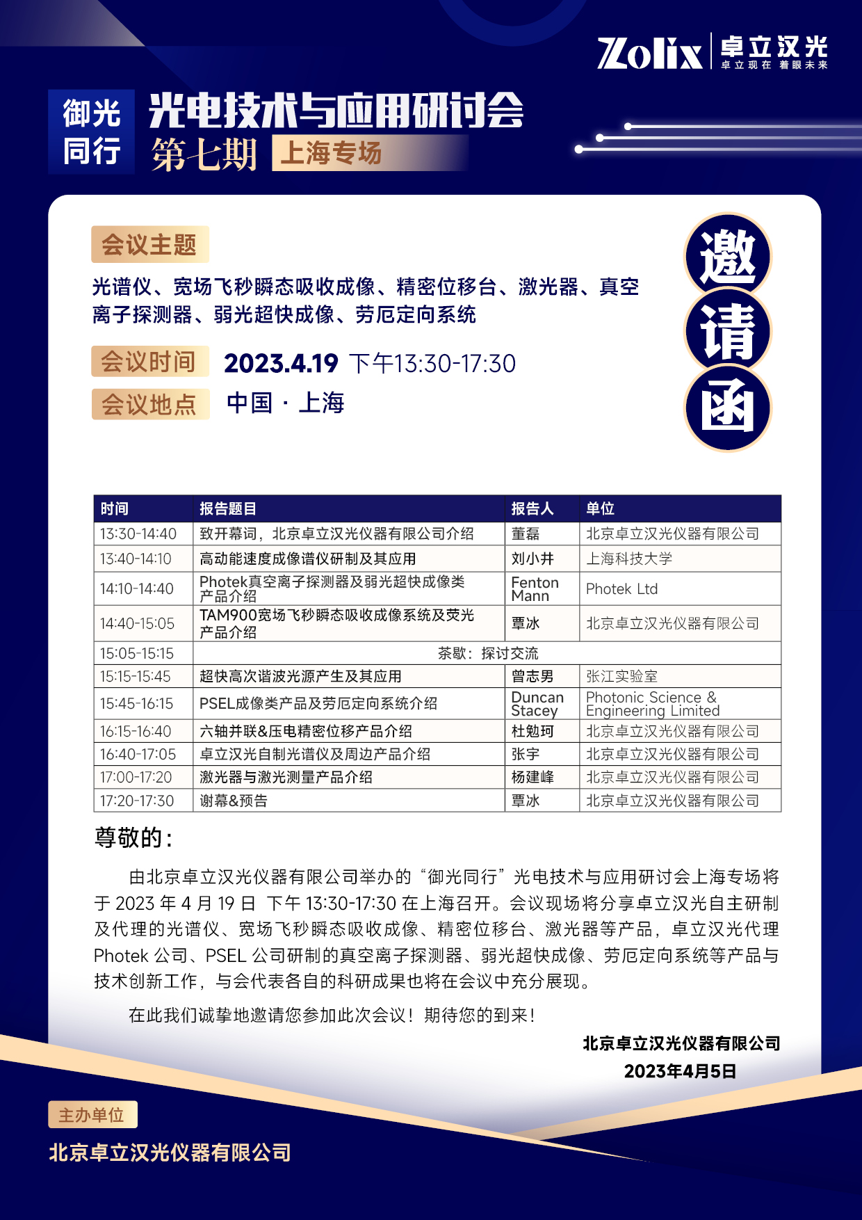 截至目前,卓立漢光已順利舉辦了五期線下/線上研討會(huì),觀眾熱情高漲,為了滿足大家對(duì)會(huì)議的期待,接下來(lái)的三期“御光同行”主題研討會(huì)將分別在北京、上海、合肥舉辦,誠(chéng)邀會(huì)議所在城市及周邊單位的專家學(xué)者參加會(huì)議。